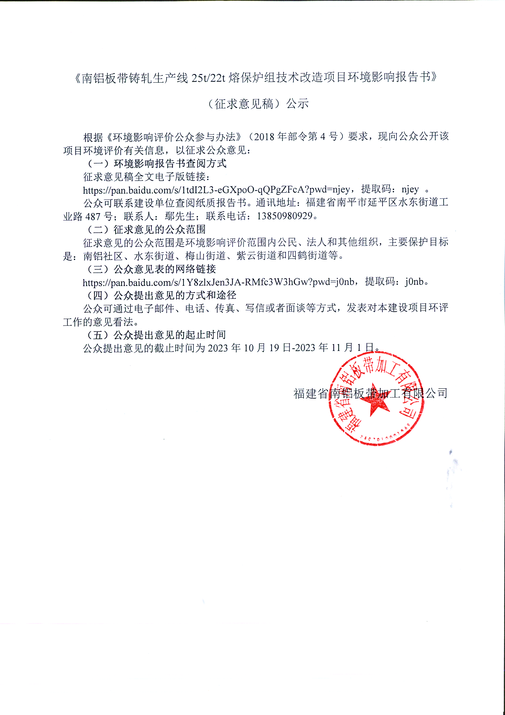 7.南鋁板帶鑄軋生產(chǎn)線25t22t熔保爐組技術(shù)改造項目環(huán)評一次公示 | 8.2023年危險廢物管理計劃 |