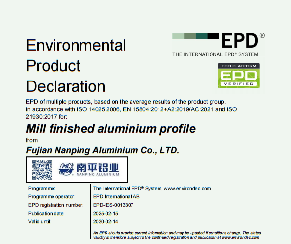 南平鋁業(yè)建筑鋁型材全系主導(dǎo)產(chǎn)品獲國際EPD認(rèn)證