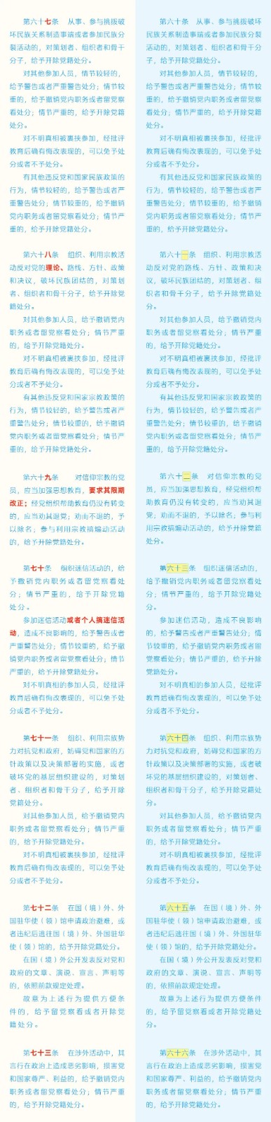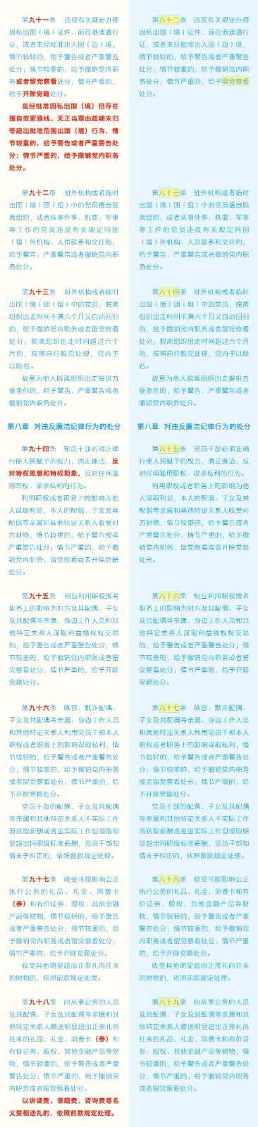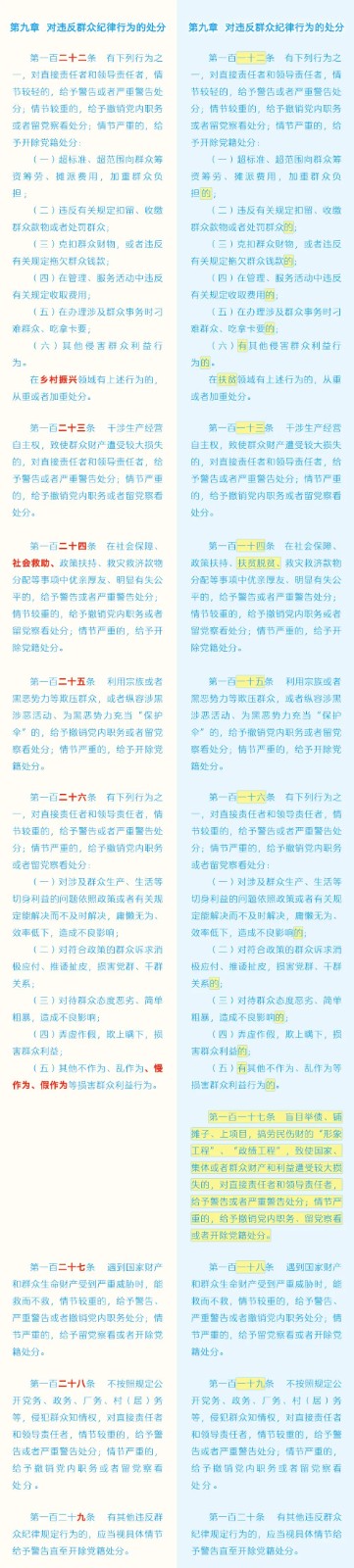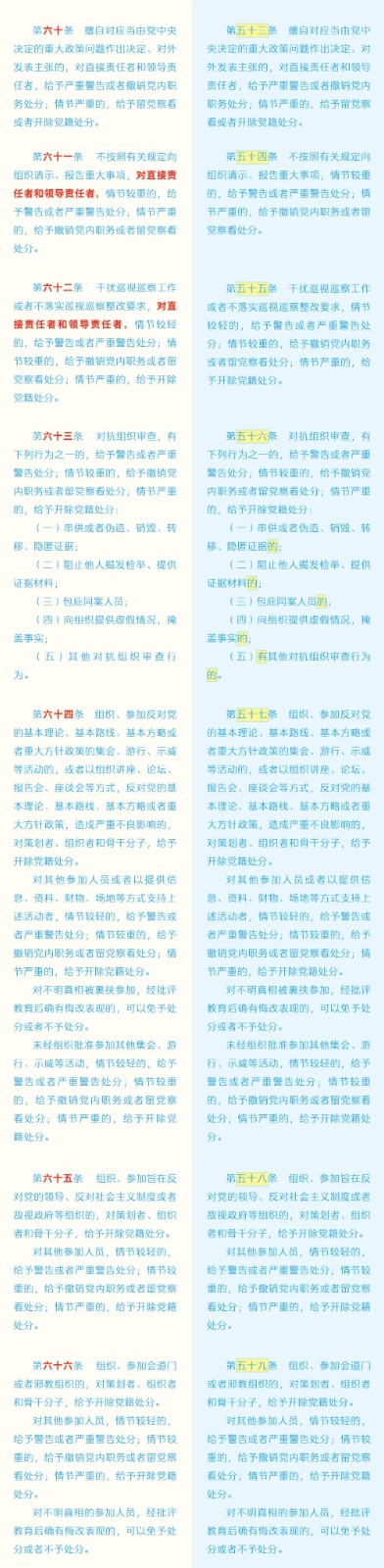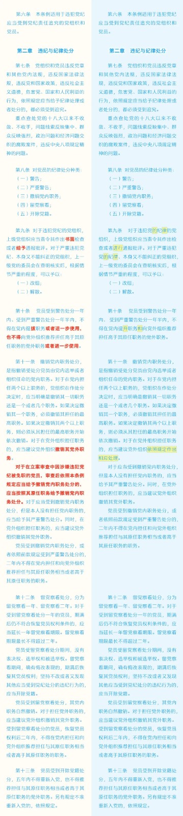 《中國共產(chǎn)黨紀(jì)律處分條例》修訂條文對照表 發(fā)表時(shí)間:2024-01-04